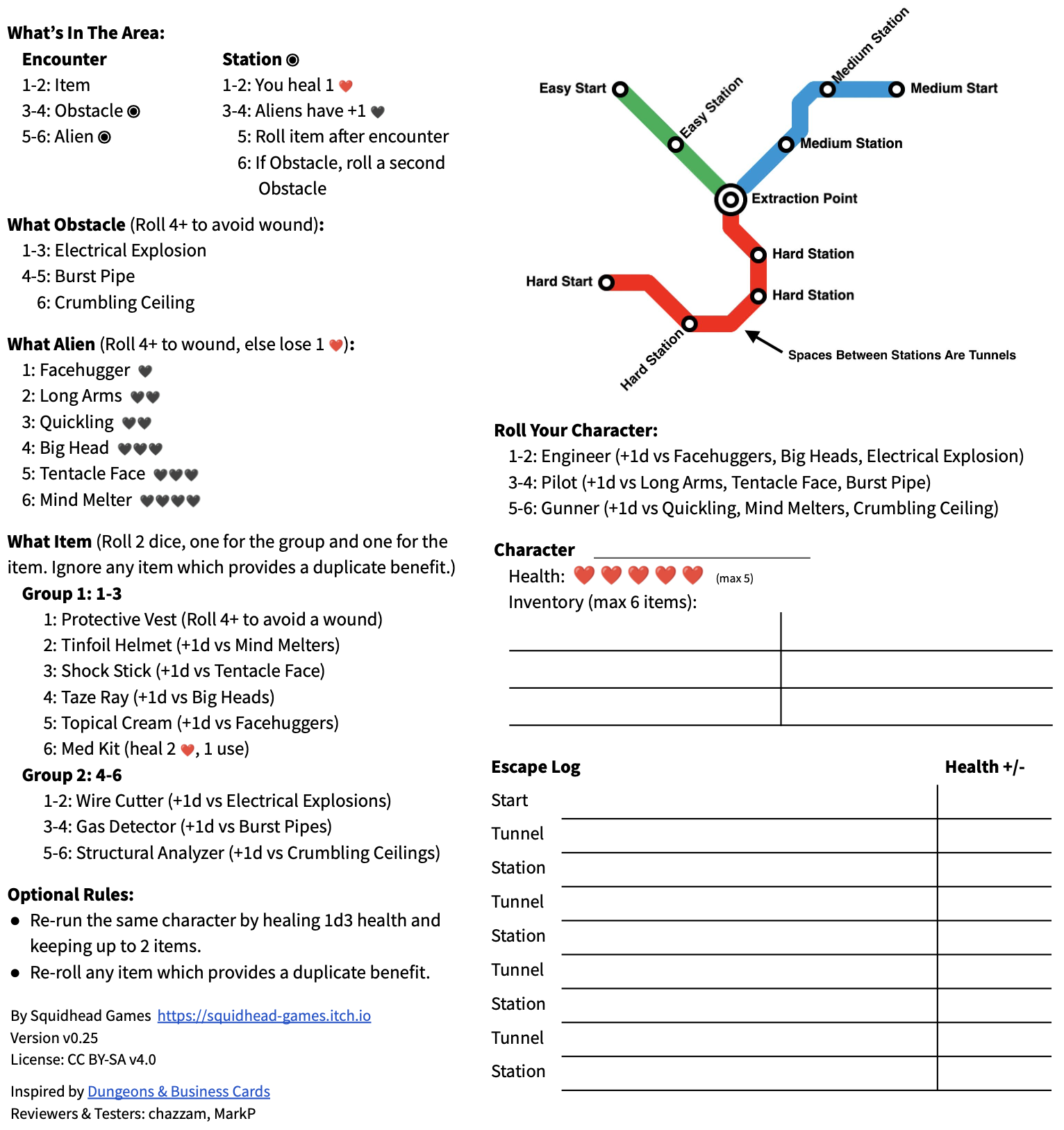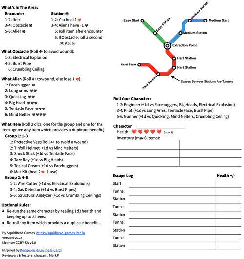 One page game for escaping a hostile planet